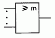 La sortie est dans l'état 1 si, et seulement si, le nombre d'entrées qui sont dans l'état 1 est supérieur ou égal au nombre marqué dans le symbole distinctif figuré ici par m.