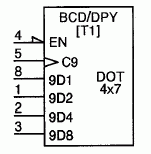 [T1] refers to a font table describing the decoding from BCD to a dotmatrix 4x7.